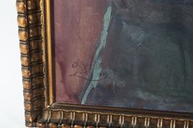 dipinto ad olio su compensatocornice in legno dorato e intagliato, cm 70 x 70.