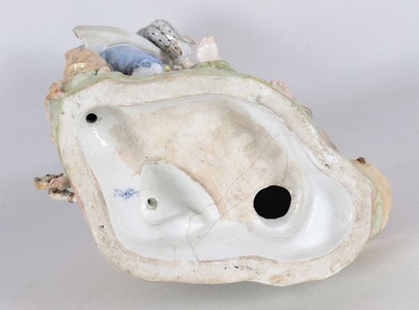 "Scena allegorica pastorale", antico gruppo in porcellana policroma Meissen, Periodo Marcolini