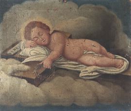 "Gesù Bambino dormiente con i simboli della Passione"