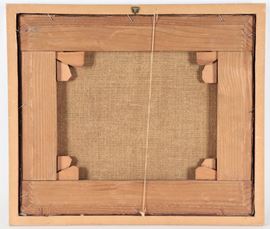 piccolo dipinto ad olio su telacornice argentata, cm 30,5 x 35,5.