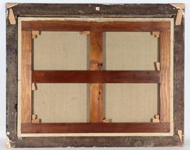dipinto ad olio su telacornice in legno ebanizzato e dorato, cm 70 x 90.