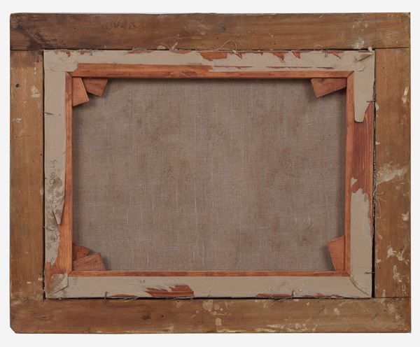 dipinto ad olio su carta applicata a tela
