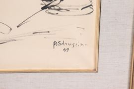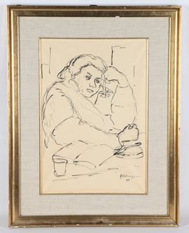 Firmato e datato 1949. "Pensatore al tavolo dell'osteria"