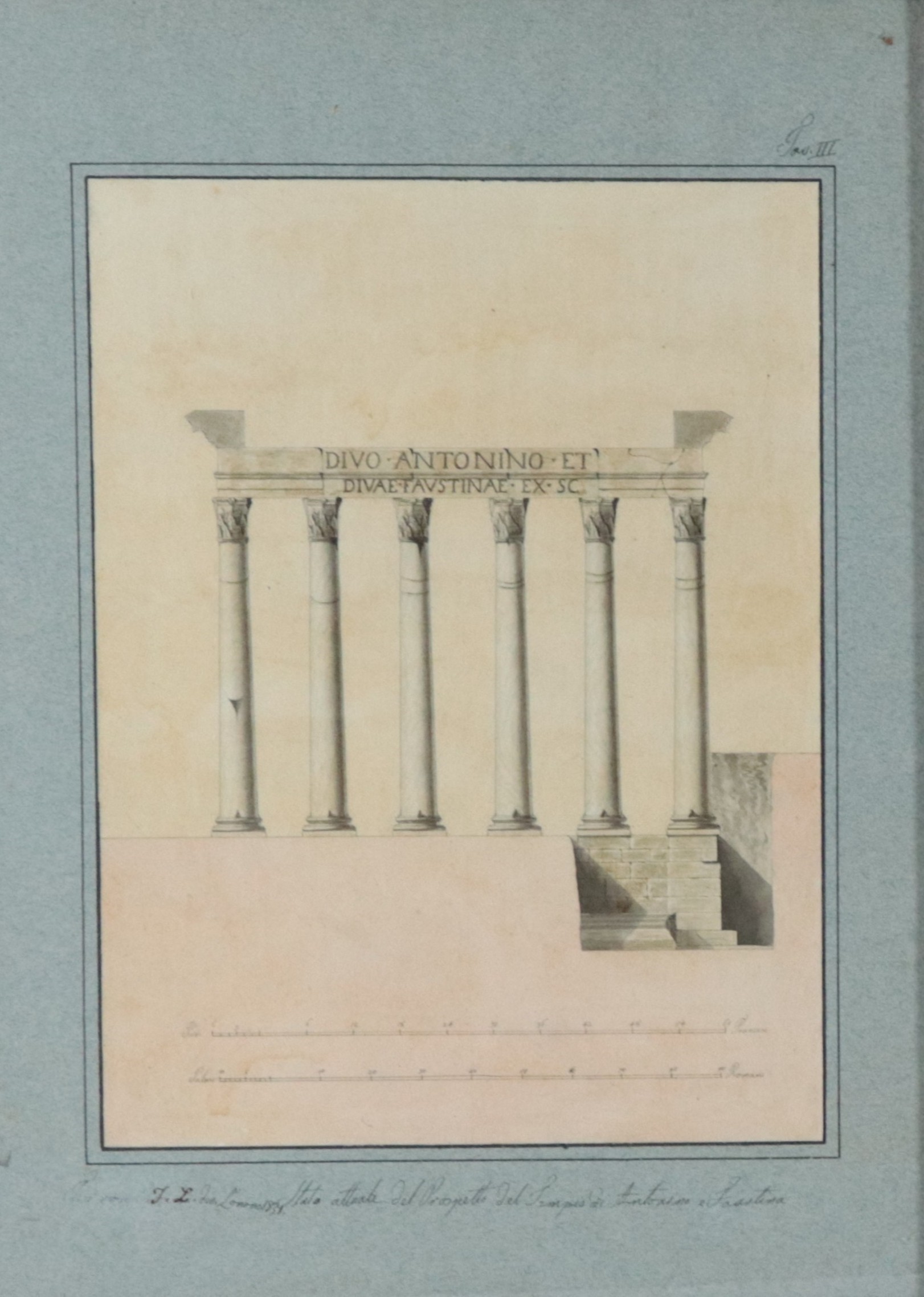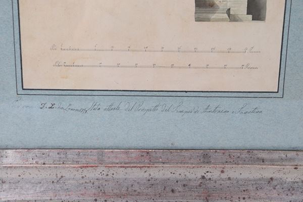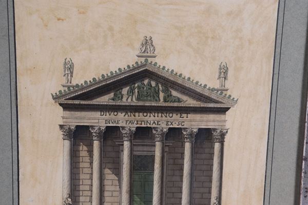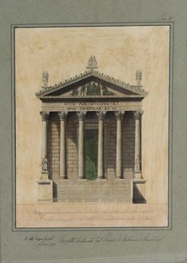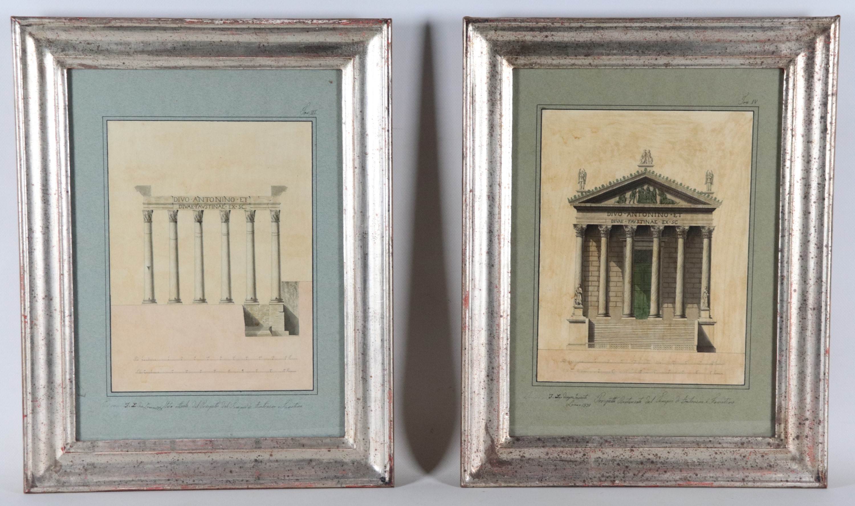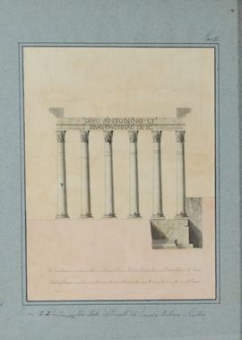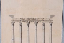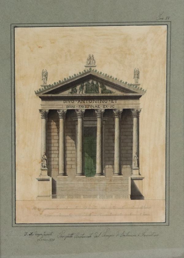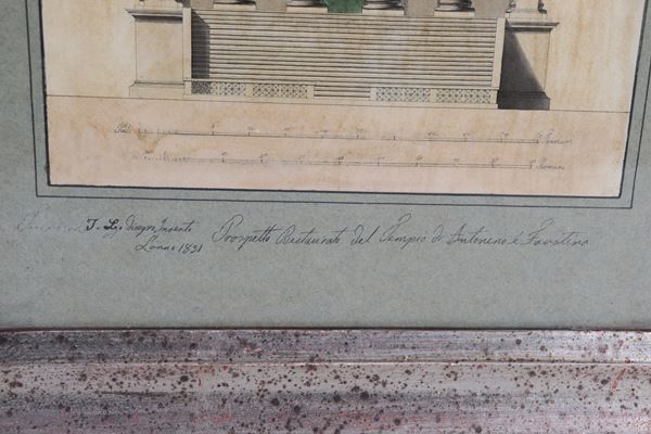 Siglati e datati 1831. "Stato attuale del prospetto del Tempio di Antonino e Faustina" e "Prospetto restaurato del Tempio di Antonino e Faust [..]