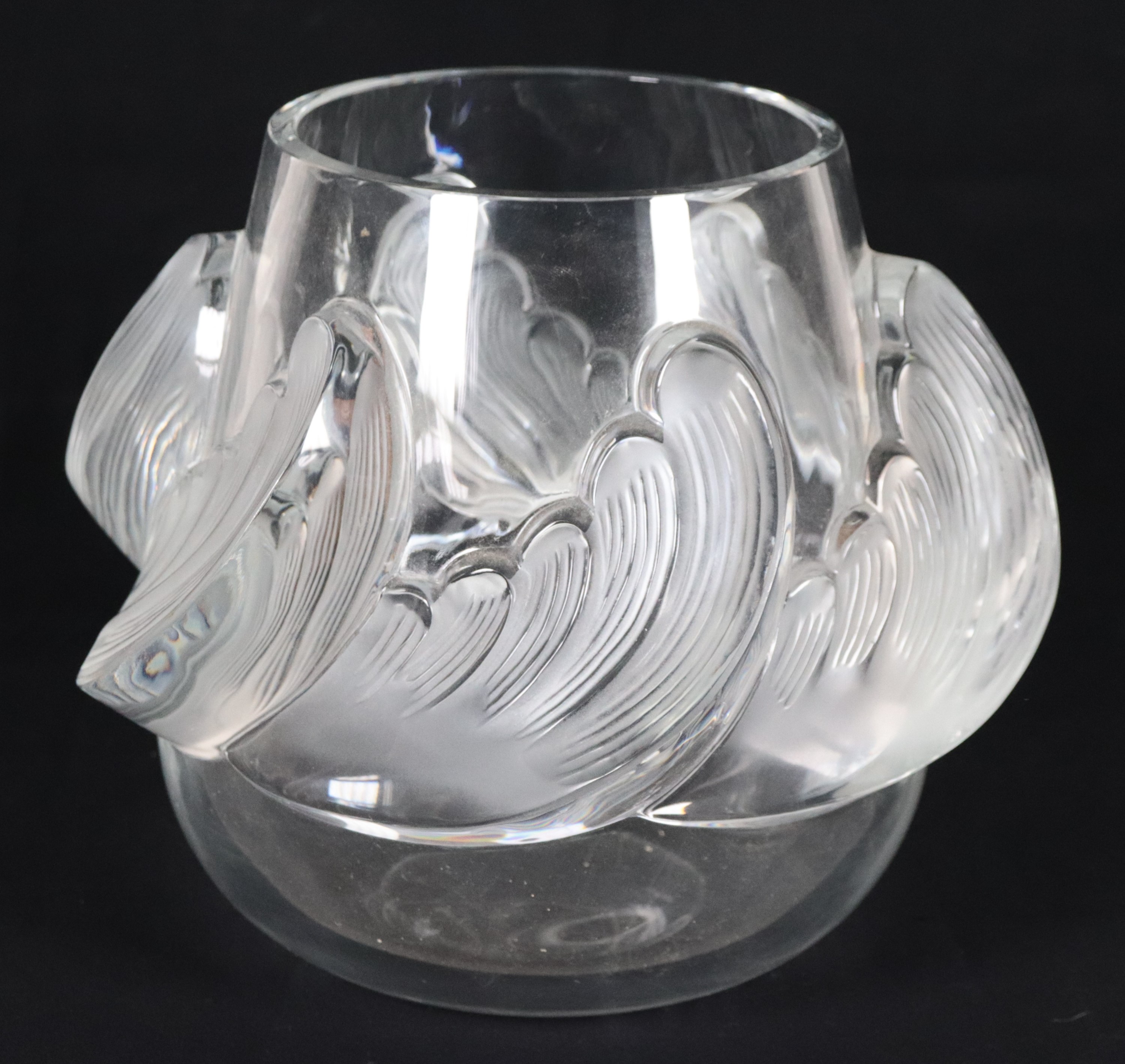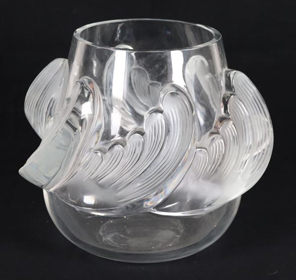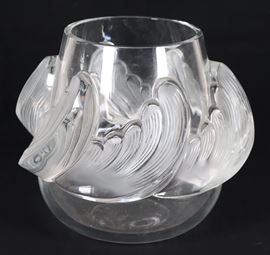 "Vagues", vaso a coppa con onde a rilievo in cristallo Lalique