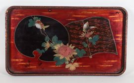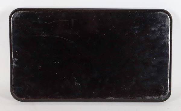 Vassoio francese Liberty in legno laccato, con decorazioni policrome a motivi di cineserie