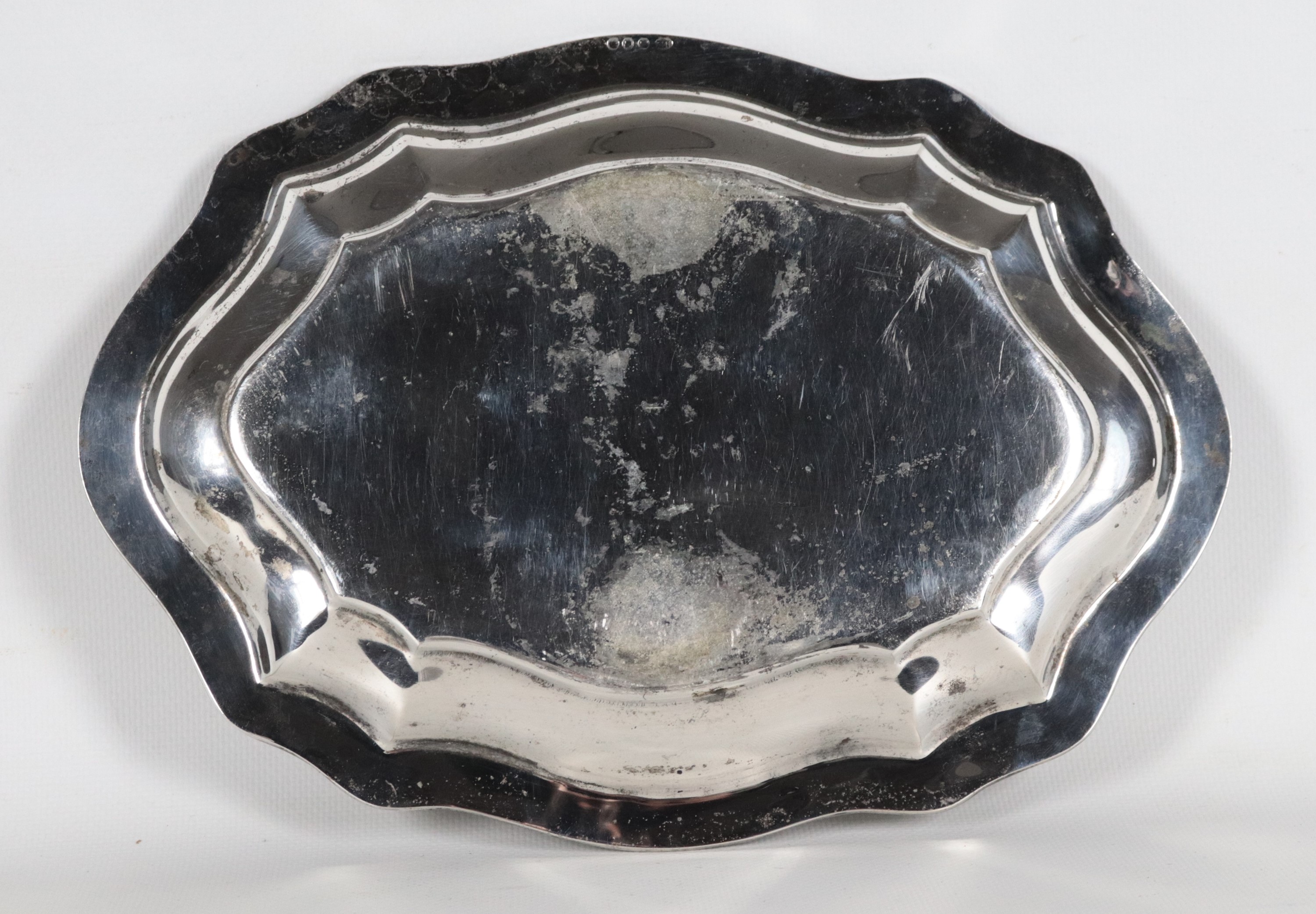 Vassoio ovale portaposta in argento con bordo sagomato, gr. 350