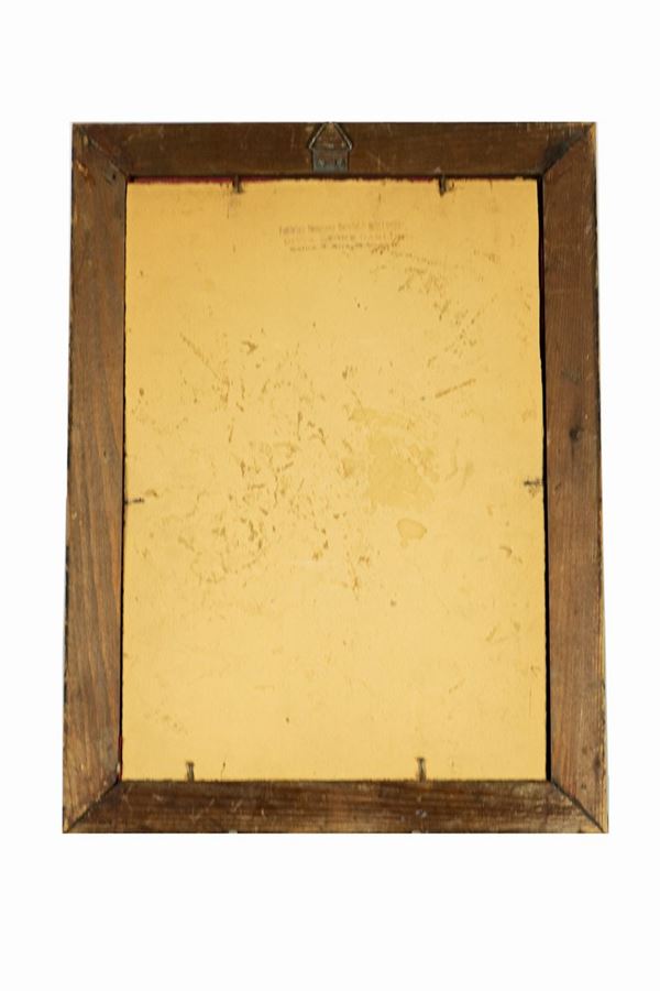 chiseled and embossed, mounted on a fabric panel in a walnut frame. Measure cm. 30 x 40 h.