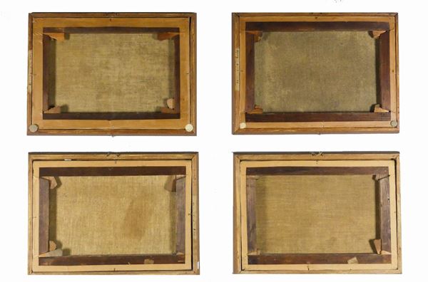 four oil paintings on canvas of excellent pictorial quality. The Master Veneto, son of Gaspare and brother of Giuseppe, was part of the Academy of Painting and Sculpture in Venice, dedicating himself to genre and landscape scenes. His paintings show a Flemish and Dutch influence as well as the pastoral ways of F. Zuccarelli and G. Zais. The Diziani belongs to the dense group of Venetian landscape painters of the second half of the 18th century, characterizing his brushstroke with a minute, frayed and subtle stroke with a prevalence of blue tones. Frames in gilded wood. Measure cm. 31 x 45 each.