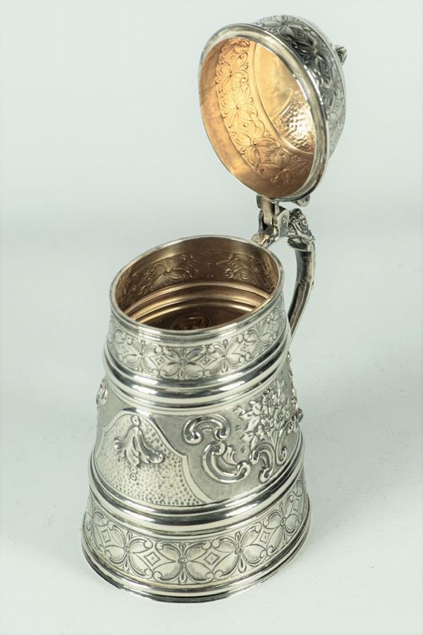 entirely embossed and chiseled with floral geometric scrolls. Weight gr. 628. Height cm. 21.