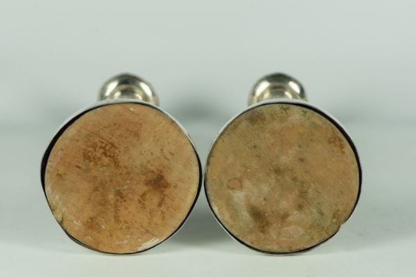 chiseled and embossed with Empire motifs. Slight dents. Height cm. 27.5 each.