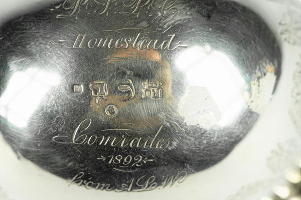 oval-shaped, supported by chiseled, embossed and perforated bases with Empire motifs, ending with lion's feet. Measure cm. 14 x 11.5 x 8.5 h.