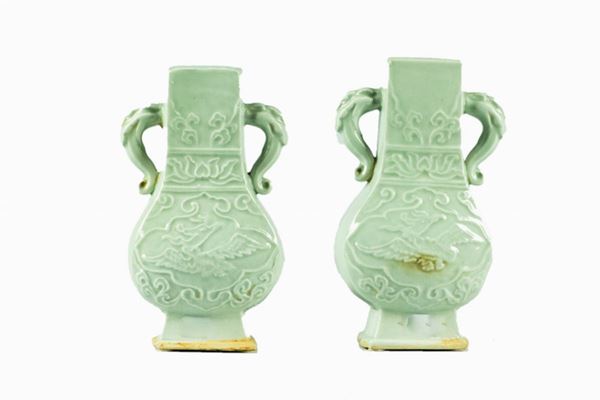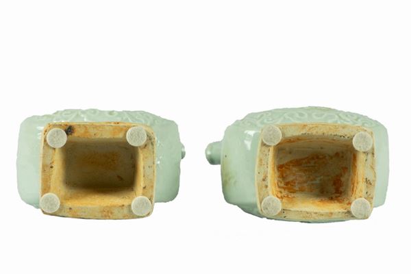 decorated in relief with motifs of leaves and dragons. Height cm. 16.5 each.