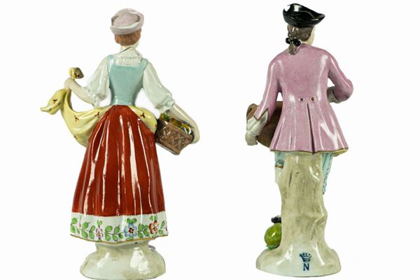 Pair of Capodimonte porcelain figurines "Apple sellers"