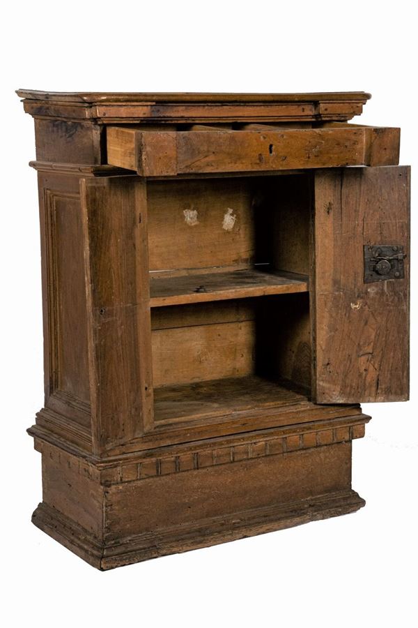 in pickled walnut with central puller and two lower flaps. Measure cm. 64 x 31 x 85.5 h.