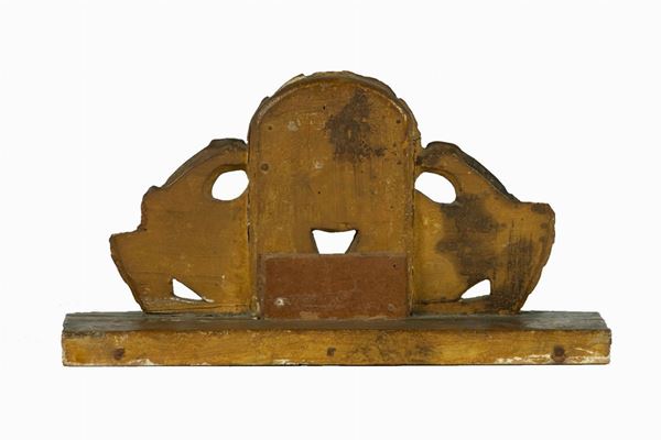 carved in neoclassical motifs with sculptures of eagles and laurel wreath. Measure cm. 36 x 10 x 20 h.