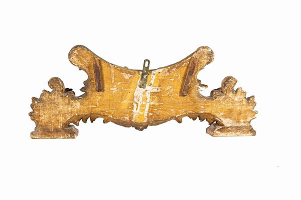 carved with motifs of volutes of acanthus leaves with a shell in the center. Measure 71 x 12 x 30 h.