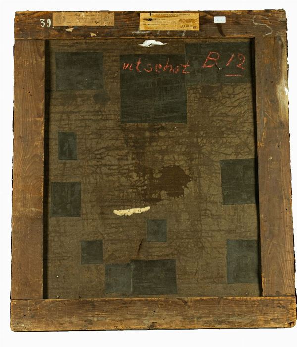 oil painting on canvas in an oval shape. Various defects to the canvas. Measure cm. 75 x 63.