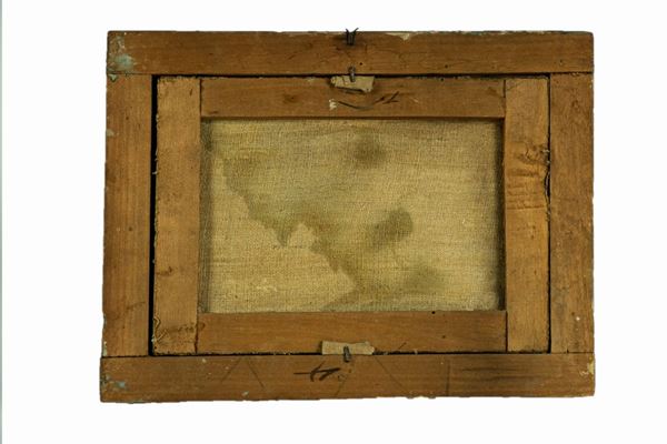 on paper applied to canvas in an ancient lacquered wooden frame. Slight flaws. Measure cm. 19 x 26.
