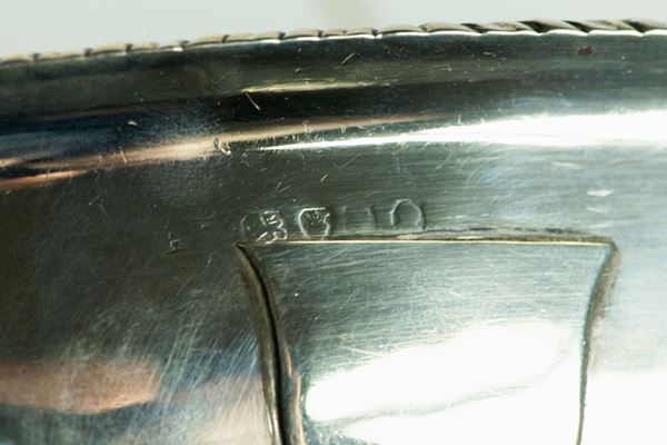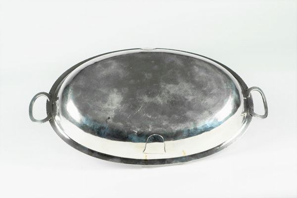 oval-shaped with two handles. Measure cm. 37 x 21.5 x 4.5 h.