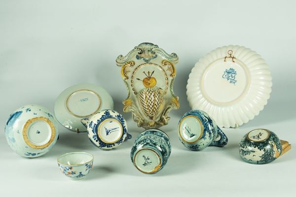 consisting of: holy water stoup, albarello, jug, cups, saucers etc. Various defects. & Nbsp;