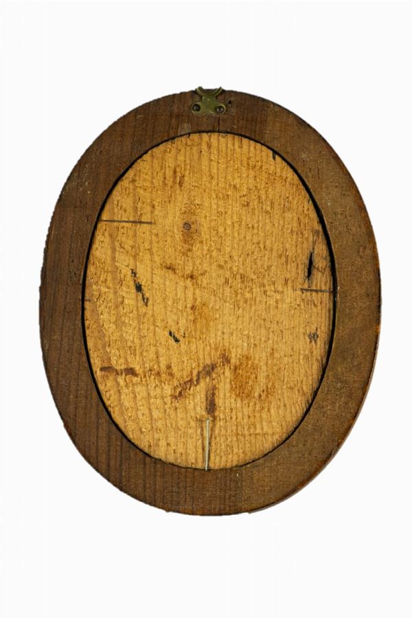 painted on copper, walnut frame. Measure cm. 17 x 21.5 h.