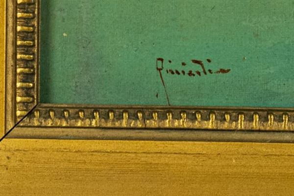oil painting on canvas, the work of the Neapolitan artist who dedicated himself to the animated Neapolitan landscape and the navy, as well as lively genre paintings, gilded wood frame. Measure cm. 24 x 38.