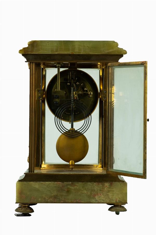 Small temple clock in onyx marble and crystal