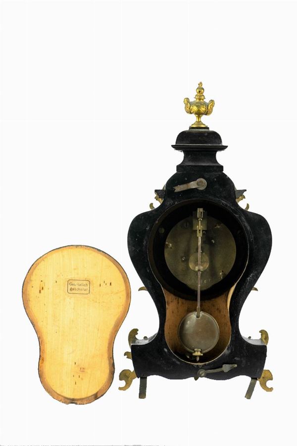 in ebonized wood with friezes in gilded bronze and chiseled in the Boulle manner. Not working, to be overhauled. Measure cm. 15 x 8 x 32 h.