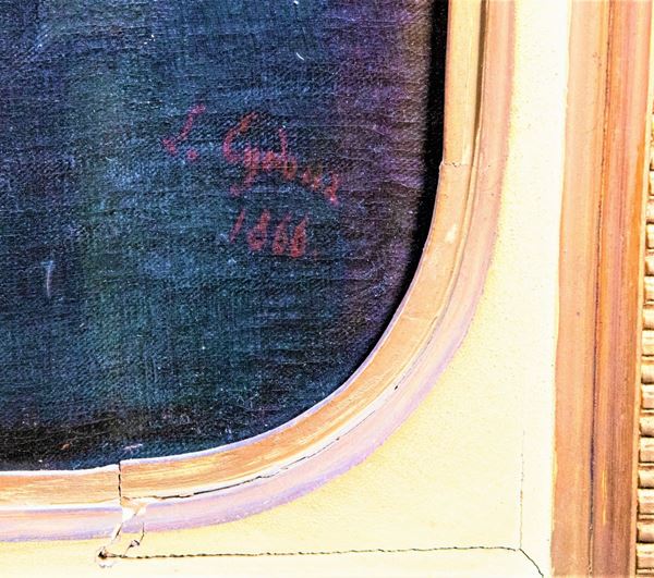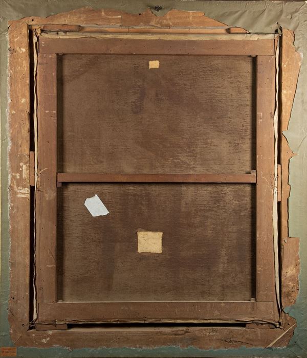 oil painting on canvas of excellent pictorial execution in an antique frame in gilded and lacquered wood. Slight defect in the canvas. Measure cm. 95 x 85.