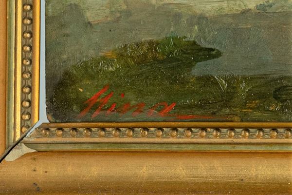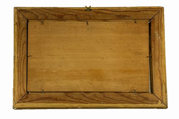 oil painting on tablet in gilded frame. Measure cm. 19 x 32.