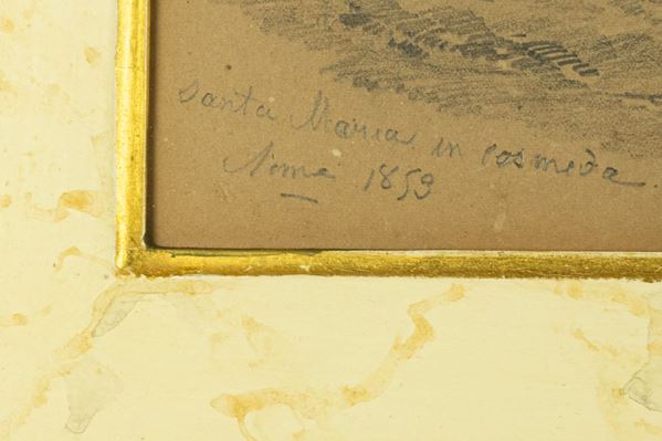 pair of drawings on paper & nbsp; in ink, charcoal and white lead, ebonized wood frames with passepartout decorated with faux marble. Measure cm. 44 x 29 each.