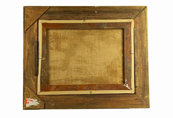tempera painting on paper applied to canvas in a gilded wooden frame. Measure cm. 36 x 45.