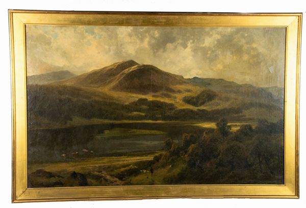 "English Landscape with Shepherd, Herd and Herds". Signed.
