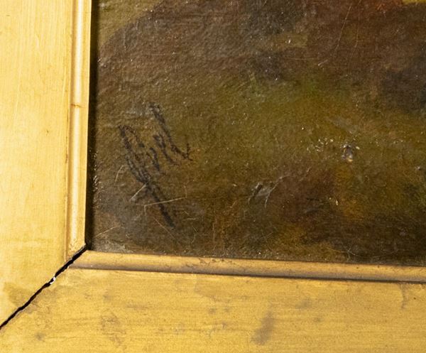 oil painting on canvas of excellent pictorial execution in gilded wood frame. Measure cm. 77 x 125.