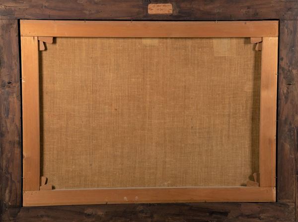 oil painting on canvas with bright brushstroke and strong chromatic contrast, antique gilded wooden frame. Measure cm. 72 x 102.