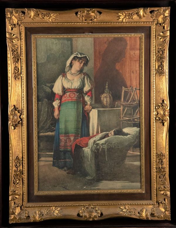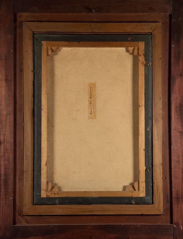 watercolor in gilded and carved frame with walnut support. Measure cm. 72 x 49.