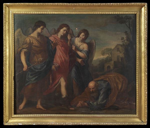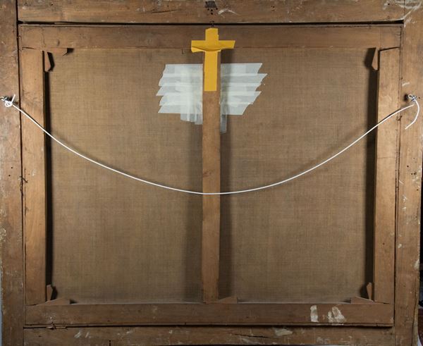 oil painting on canvas of excellent pictorial execution in ancient gilded wooden frame. The canvas has defects. Measure cm. 120 x 150.