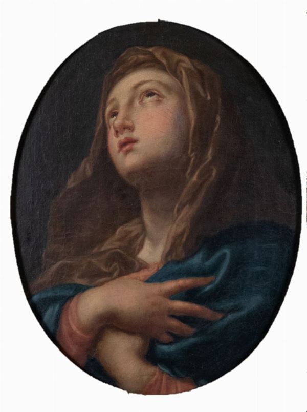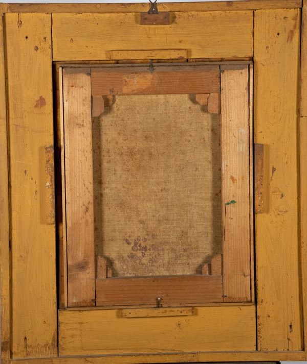 Oil painting on canvas of fine pictorial quality in an ancient gilded and richly carved wooden frame. Measure cm. 48 x 38.