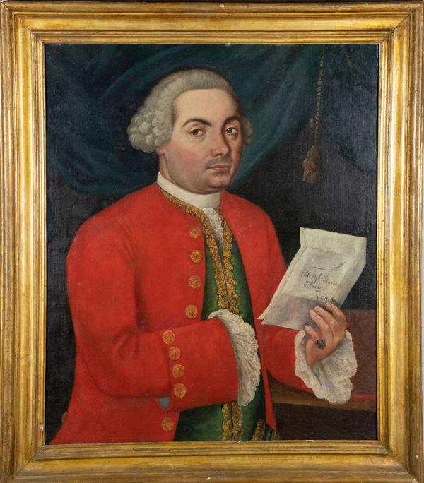 oil painting on canvas in an antique frame of the time in gilded wood. Measure cm. 75 x 60.