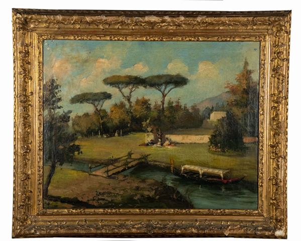 "Lunch on the grass in the park of the villa with stream and gondola"