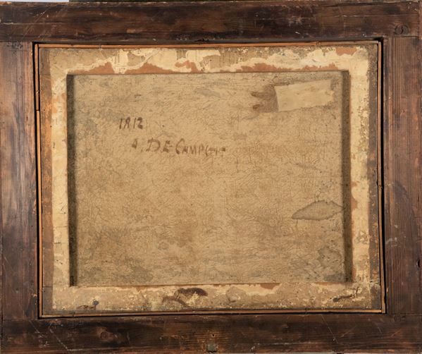 oil painting on canvas in gilded and carved frame. Measure cm. 50 x 64.