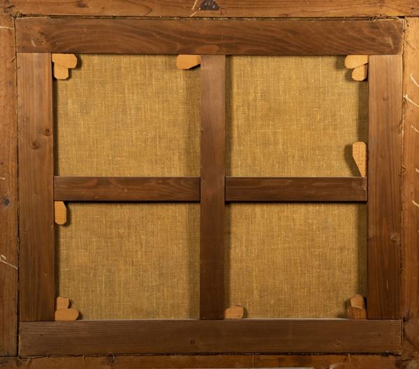 oil painting on canvas of excellent stretch and pictorial execution in an ancient gilded wooden frame. Measure cm. 79 x 90.