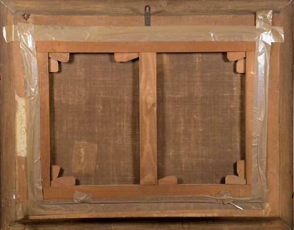 oil painting on canvas in gilded frame and carved with Empire motifs. Measure cm. 53 x 75.
