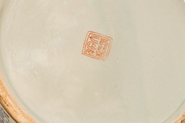 entirely colorful with landscape and animal motifs. Diameter cm. 21 x 24 h.
