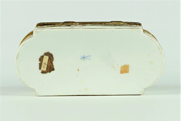 curved oval shape, with polychrome decorations with marine motifs with ships, bunches of flowers and birds. Measure cm. 23 x 12 x 6.5 h.