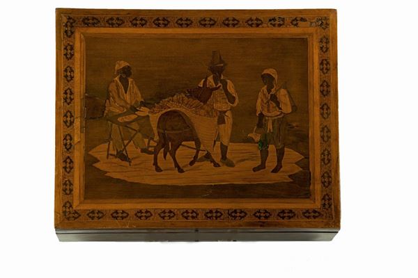 entirely inlaid with "popular scene and bunches of flowers". Measure cm. 33 x 26 x 12 h.