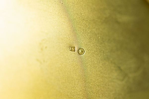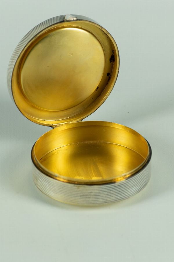 on the lid miniature painted "Vase with flowers", interior in vermeil. Diameter cm. 10 x 3 h.