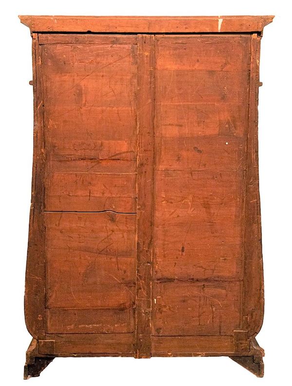 In rosewood & nbsp; with maple inlays with swirl motifs and floral intertwining. The upper part with two doors with mirror and internal pullers, the lower part with four pullers. Measure cm. 128 x 61 x 191 h.