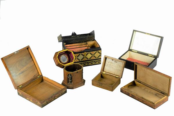 with various decorations and inlays, different sizes and shapes. Slight flaws. Maximum size cm. 20 x 12 x 13 h.